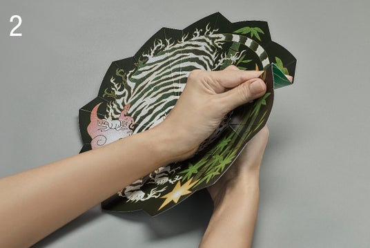 絵柄面を見ながら外側に 飛び出している部分を山折りに。