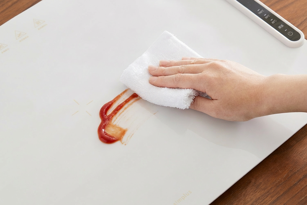 テーブルを熱から守るシリコン脚(滑り止め)を採用し、過熱保護・自動オフ機能で万が一のリスクにも配慮。さらに、加熱エリアの縁を熱くなりにくくした火傷防止エッジ設計や、外れにくい強固なコード接続部で、毎日の食卓でも安心して使える設計です。加えて、ISO9001 認定工場で生産、ノンホルマリン仕様、PSE 認証済みなど、厳格な基準をクリアしています。