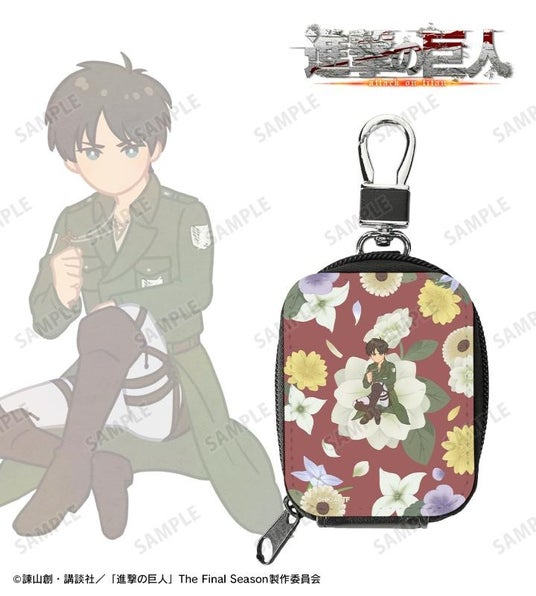 エレン、ミカサ、アルミン、ジャン、ヒストリア、エルヴィン、ハンジ、リヴァイのイラストをボタニカルデザインに落とし込んで繊細なタッチで新たに描き起こし、ミニポーチに仕上げました。