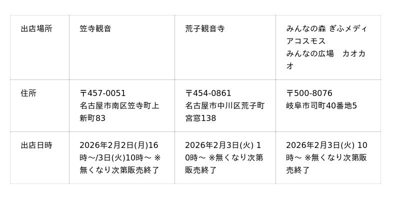 今年は、2026年の恵方観音である「笠寺観音」など3か所でも販売します!