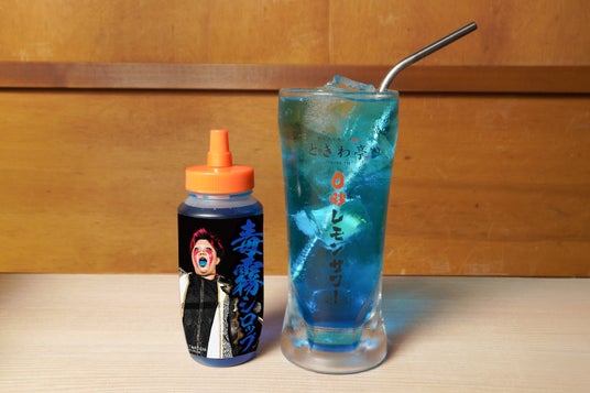 顔面を真っ青に染める毒霧も、ときわ亭では美味しいシロップにチェンジ!刀羅ナツコ選手をイメージした鉄パイプストロー片手に、レモンサワー等にお好みで入れて舌を真っ青に染めれば極悪軍団H.A.T.E.の仲間入り!?︎※人に向けての毒霧行為は禁止です
