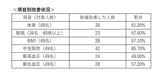 ・中性脂肪の改善率が85.7%と脂質異常改善に有効な食生活介入モデルとして成果を示した