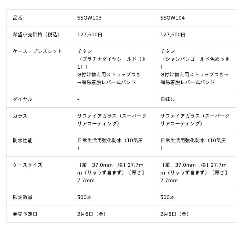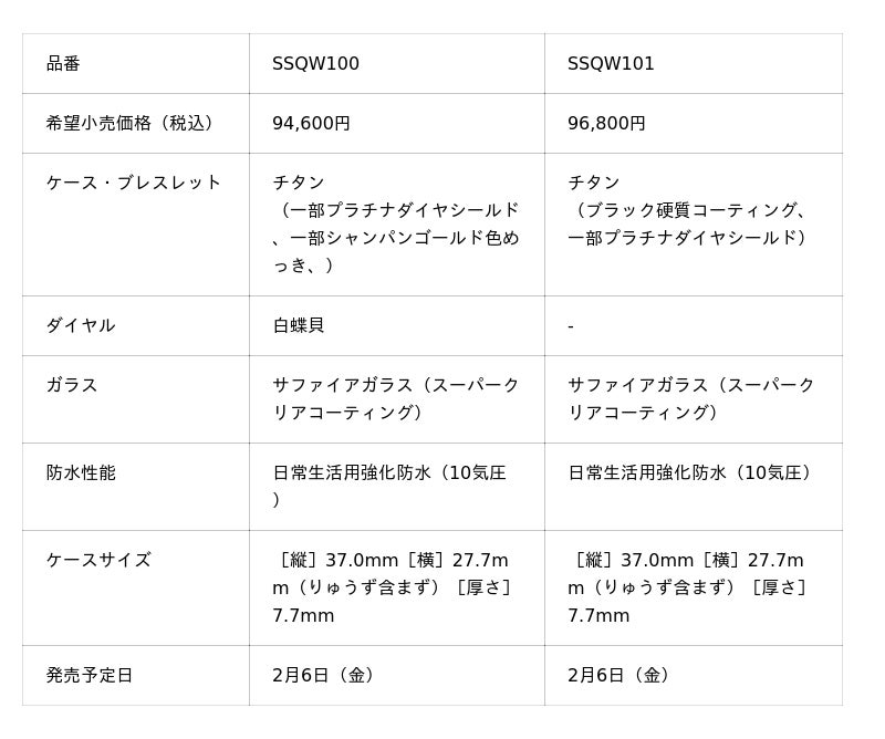 「SSQW101」は、コレクション初のオールブラックカラーを採用。ピンクゴールドカラーのインデックスと針を組みあわせ、ブラックに映える鮮やかなコントラストで美しさと高い視認性を両立しました。