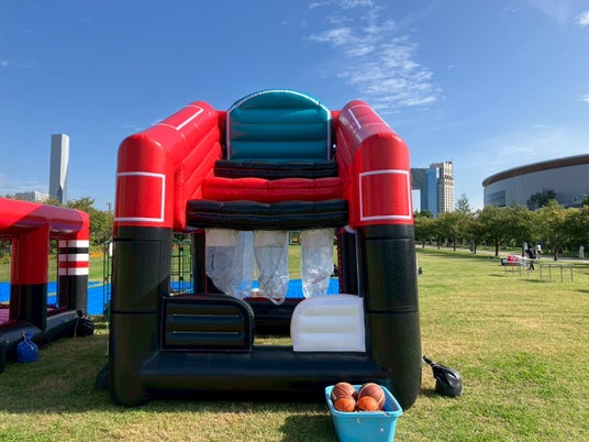 3日間限定でシーサイドデッキ(中庭)にアルバルク東京のオリジナルふわふわ遊具やフォトスポットが登場。