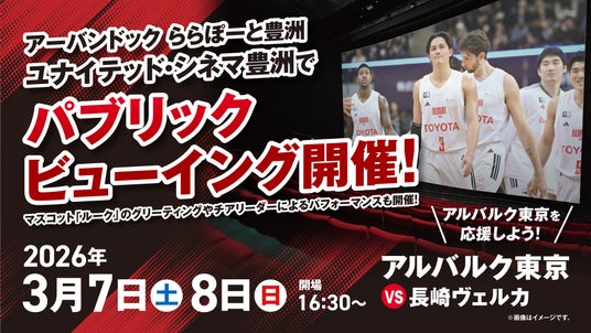 さらに、「アルバルク応援WEEK」最終2日間となる3月7日(土),8日(日)は施設内にある映画館「ユナイテッド・シネマ豊洲」にてAWAY長崎ヴェルカ戦のパブリックビューイングを開催いたします!