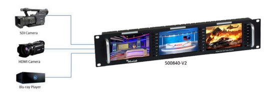3つの5インチTFT LEDディスプレイを搭載した19インチラックマウントサイズ(2U)のディスプレイユニットです。低消費電力ながら安定した動作を実現し、各ディスプレイは、HDMI(4K30p)、3G-SDI、コンポジット(CVBS)の入出力に対応。音声入力およびステレオヘッドフォン出力も備えています。また、センターマーカー、表示領域の設定、モノクロ表示、フォーカスアシスト、アスペクト比切り替え、画面反転、画面フリーズ、色温度の設定など、シーンに応じた詳細な設定が可能です。発売は2026年2月を予定しています。