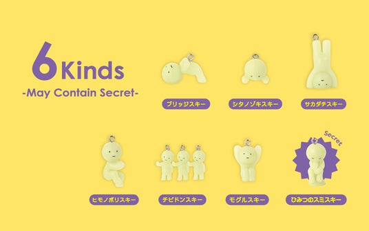 シュールでかわいらしいスミスキーの顔の形をしたカプセルを開けるまで、どのスミスキーに出会えるかはお楽しみ。ミニフィギュアシリーズ「SMISKI Series 3」より、全6種類+シークレット 1種類のスミスキーがラインナップ。