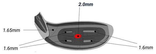 今回から新たに、鉄芯とボディの間(下図赤矢印の示す部分)を拡大した設計にすることで、これまで以上にフェースがたわみやすくなり、打点がぶれてもボール初速が落ちにくい設計に進化しました。