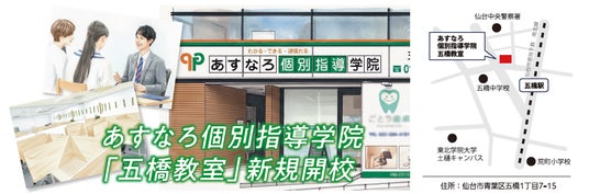 株式会社 学研ホールディングス(東京・品川/代表取締役社長:宮原博昭)のグループ会社、株式会社 学研スタディエ(埼玉・さいたま市/代表取締役社長:亀谷眞宏)が展開する、宮城県の総合進学塾 あすなろ学院は、令和8年2月15日(日)にあすなろ個別指導学院「五橋教室」を新規開校いたします。