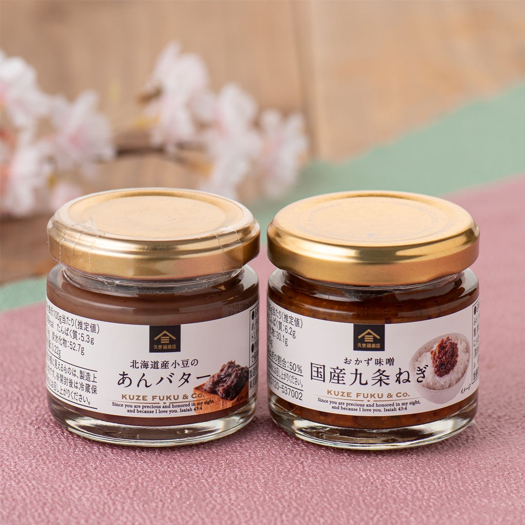 期間中、税込3,000円以上お買い上げの方に、「北海道小豆のあんバター」または「おかず味噌 国産九条ねぎ」のお試しサイズをプレゼント。「気になっていたけれど、まだ試したことがなかった」という方にぴったりです。