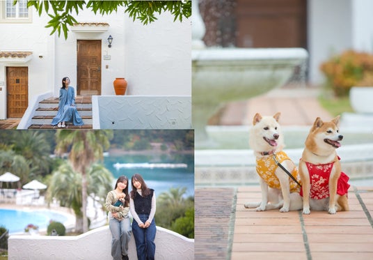本プランは、ご宿泊に追加できるオプションとして、ホテル内のフォトジェニックな空間を自由に撮影スタジオとしてご利用いただける特別なプランです。異国情緒あふれる建築やガーデン、海を望むロケーションなど、当館ならではの美しい空間で、大切な瞬間をプロの手によって写真に残します。成人式や七五三、卒業旅行、ご家族での記念撮影はもちろん、愛犬と一緒の思い出づくりなど、さまざまな記念日にご利用いただけます。