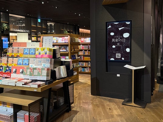 本は、読む人それぞれの視点や価値観を尊重しながら、新しい考え方に触れる機会をつくり、多様性に気づくきっかけにもなります。蔦屋書店では、そうした“新しい視点との出会い”を大切にし、日常の中に気づきの瞬間が生まれる場をつくり続けてきました。今回、「異彩の日」の取り組みにあわせて、蔦屋書店に集う知的好奇心の高いお客様に向け、「異彩の日」への想いを伝えるメッセージを店頭デジタルサイネージで発信します。立ち止まって見ていただく中で、多様な価値観に思いを巡らせるきっかけになればと考えています。また、読書体験にそっと寄り添う存在として、ヘラルボニー契約作家・佐々木早苗さんのアートをあしらった「異彩の日」オリジナルしおりも制作しました。