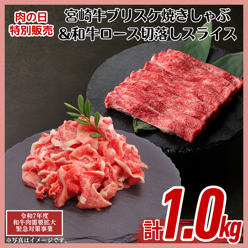 【畜産農家応援】宮崎牛ブリスケ焼きしゃぶ&和牛ロース切落しスライス計1kg通常価格10,000円