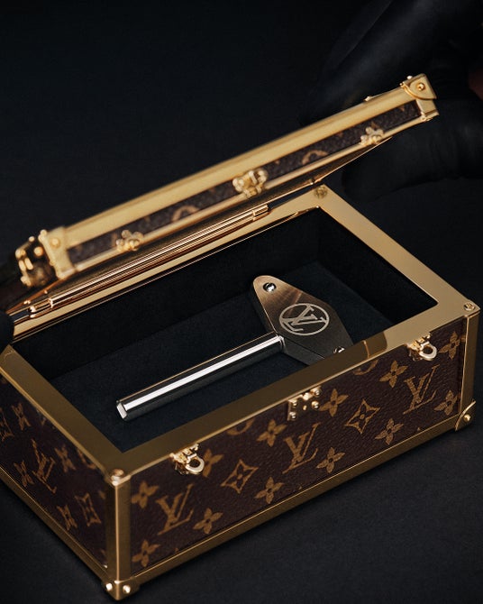 このプレシャスなモデルを収めるために特注された輸送用ケースも、コンテナ(容器)とコンテンツ(内容物)の間の遊び心ある対比を継承。メゾンのアイコニックなモノグラム・キャンバスをまとったトロフィー・トランクの形を採用しています。