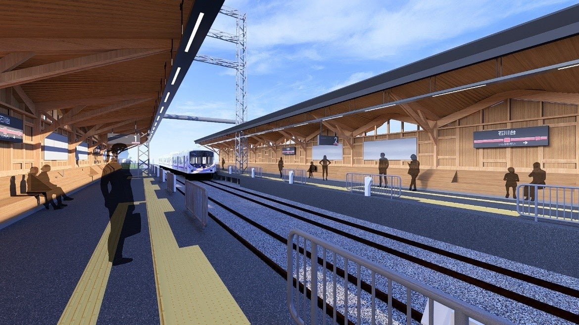 本事業では、駅舎開業から約100年が経過した石川台駅において、ホーム屋根の建替え・延伸や駅舎内外装および駅構内トイレのリニューアルなどによって、安全性・快適性や環境性能の向上を図るとともに、木材を活用したリニューアルによって、親しみやすく温かみが感じられる駅づくりを推進します。