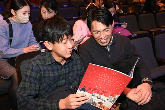 東急ミュージカルプログラム当日、このプログラムの主役である中学生・高校生のみなさまが、ご友人やご兄弟、ご両親など大切な方と一緒に数多くご来場くださいました。入場時には少し緊張した表情も見られ、「渋谷駅直結の施設にミュージカル劇場があるなんて知らなかった。どんなステージが見られるのかドキドキする」という声も寄せられました。いざ演目が始まると、華やかな衣装と音楽に彩られたシンガーやダンサーのパフォーマンスに夢中になり、自然と手拍子が広がります。会場全体が一体となる空気の中で、心躍るクリスマス体験を楽しんでいただきました。目の前で繰り広げられる迫力のステージに圧倒され、シンガーやダンサーと共に踊り、会場ならではの躍動感を存分に味わう、ここでしかできない体験に目を輝かせる姿がとても印象的でした。
