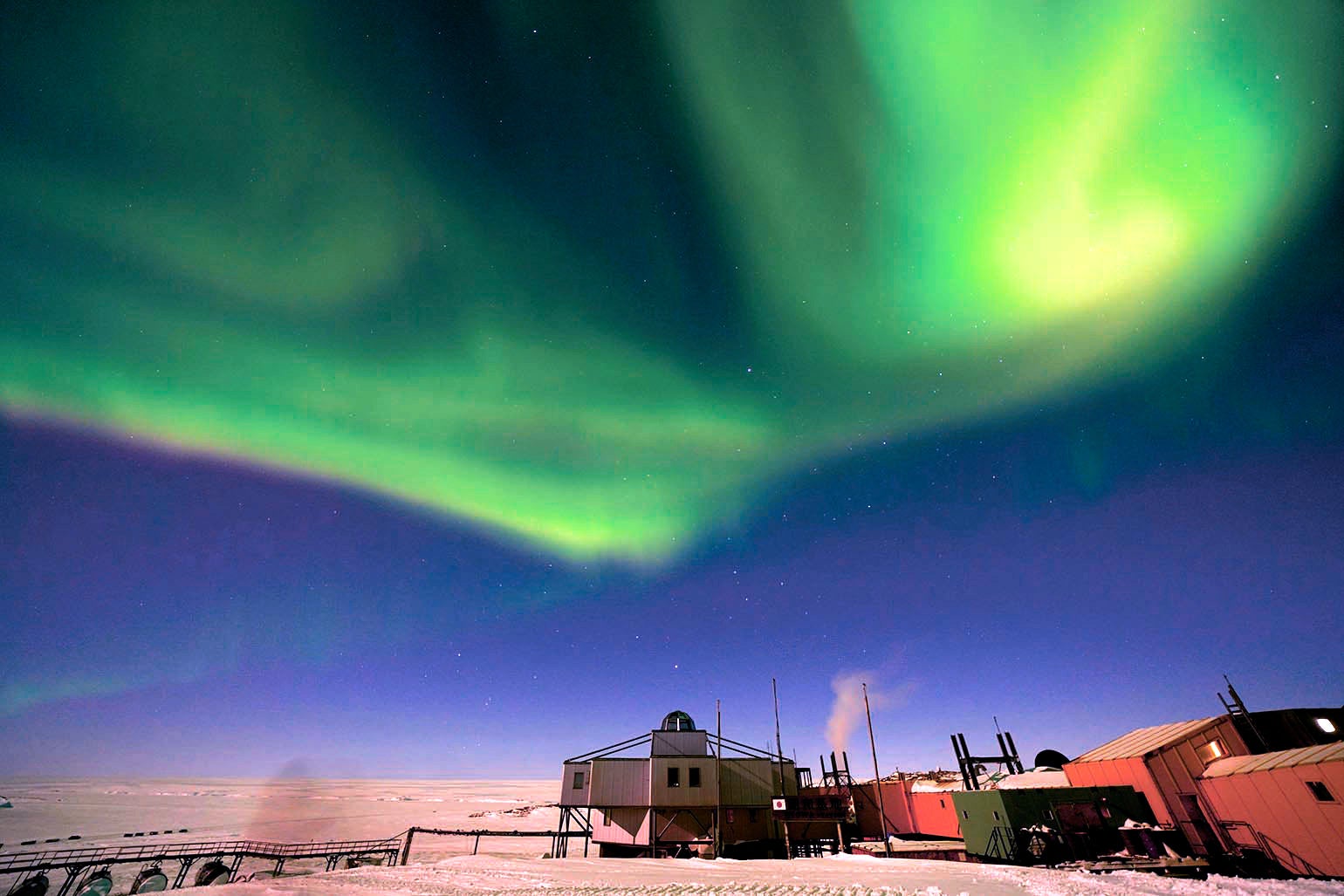 南極・昭和基地の上に広がるオーロラの輝き (C)朝日新聞社