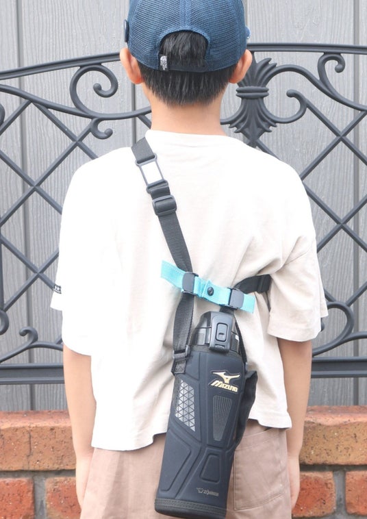 「水筒安心ホルダー」は、水筒による事故のニュースが連日報道されていた昨年6月にユーザーからの多くの声を受け、幼児でも使いやすい改良版として発売されました。