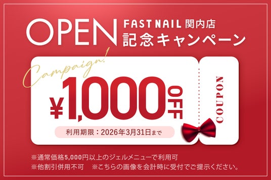 オープンを記念して、「FASTNAIL 関内店」限定で《1,000円OFFキャンペーン》を実施いたします。