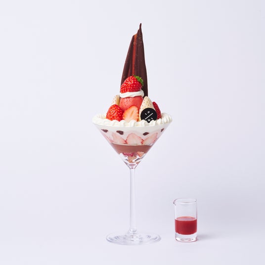 銀座本店、名古屋店、グランフロント大阪店の3店舗でお召し上がりいただけるのは、芳醇なシャンパーニュ香る、イチゴをふんだんに使用したパフェとワッフル。チョコレートアイスはシャンパーニュ地方で作られているぶどう由来の蒸留酒「マール ドゥ シャンパーニュ」で香り付けされており、味わいに更なる奥行きを加えています。