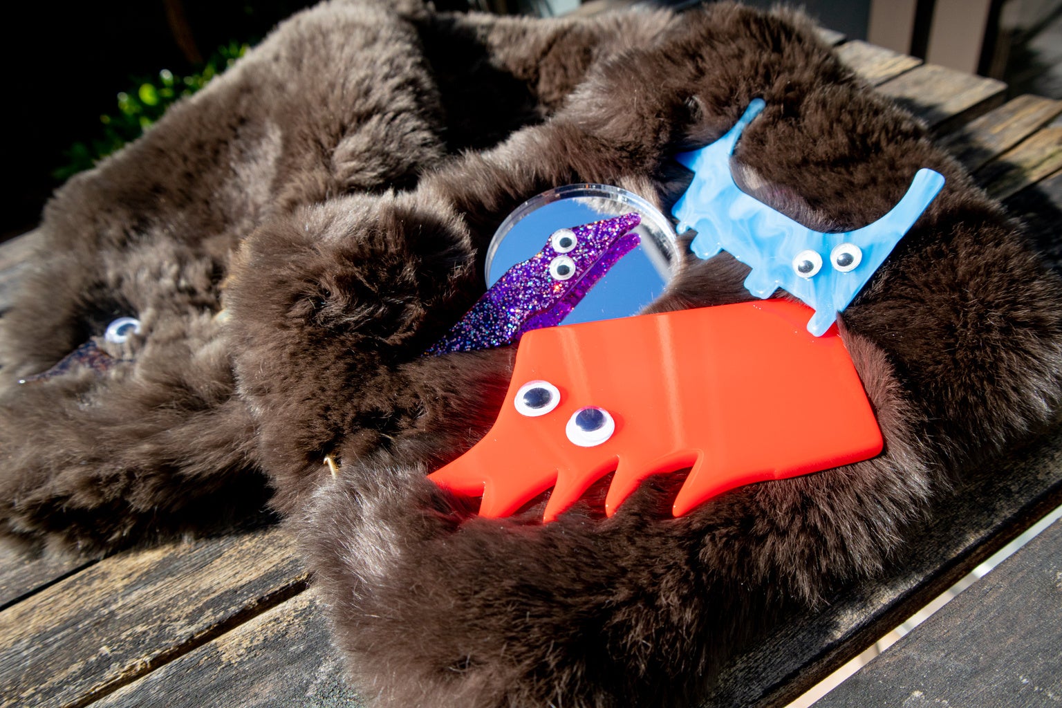 様々なアクリルのパーツに”めだま”をつけて可愛らしいモンスターを作ります!