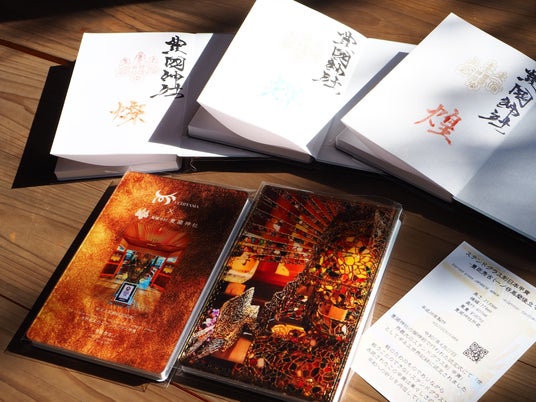 さらに、豊國神社と名鉄ホテルグループでしか手に入らない、限定デザインの「ステンドグラス御朱印帳」も販売いたします。表紙にステンドグラス甲冑の輝きをあしらった、プレミアムな一冊です。こちらは「甲冑が展示されている期間中のみ」各ホテルで販売される限定品です。