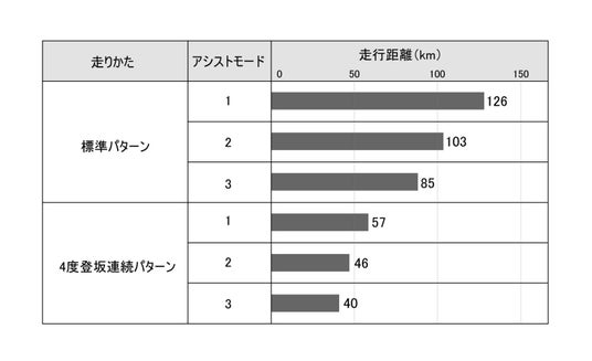 規格:JIS D 9115「一充電当たりの走行距離の測定方法」に基づき測定