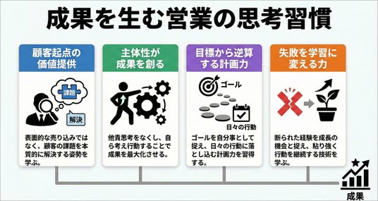 売る視点から価値提供の視点へ転換し、顧客の成功を自分の成果と捉える姿勢を構築します。