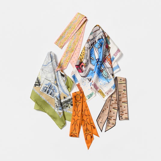 今季スカーフは “Dance”“Music” をキーワードに、自由でプレイフルなモチーフが踊る一枚。