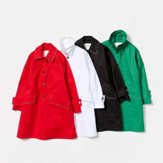 今季もトラディショナルなスタイルを軸に、エレガントで女性らしい輪郭を感じられるデザインを散りばめました。 夏の手前まで心地よく着られる素材選びと、時を重ねても色褪せない、エターナルなデザインの探求です。スタッズでさりげないモダンさを添え、メタルボタンにはジュエリーのような輝きを忍ばせています。