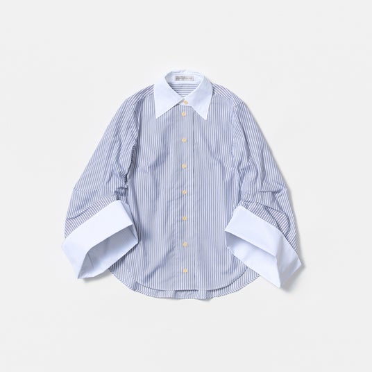シンプルなアイデアで質素なシャツを格上げすることを目指して2011年に設立された〈PALMER//HARDING(パルマーハーディング)〉。ブランドの核となるのは、独創性と創造性への信念です。創設者のリーバイ・パーマーとマシュー・ハーディングは、共にロンドンのセントラル・セント・マーチンズ校を卒業し、現在もロンドンを拠点に活動しています。感情の旅をテーマに、物語を生地に込めてドレープや彫刻のように具現化。シャツを中心に、ドレスやアウターウェア、ニットなど、ユニークな作品を展開しています。