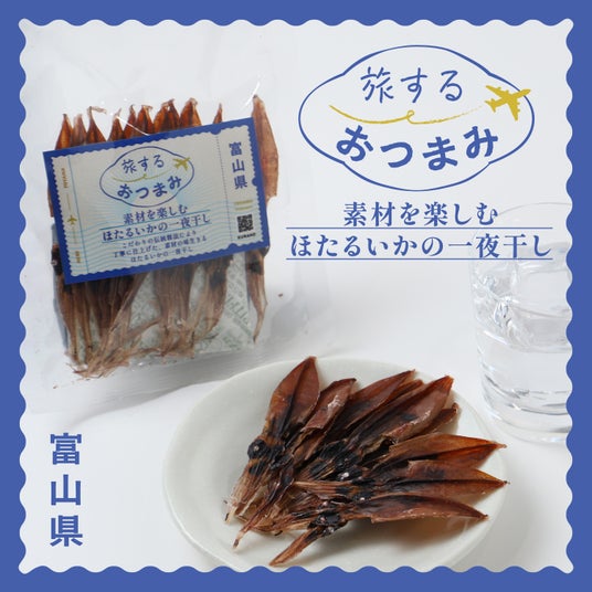素材を楽しむほたるいかの一夜干し春の限られた期間に日本海で採れる、希少なほたるいかを、旨味を凝縮するように一夜干しに仕上げました。嚙めば嚙むほどじんわり広がる濃厚な旨味と塩気で思わずお酒がすすむ味わいです。