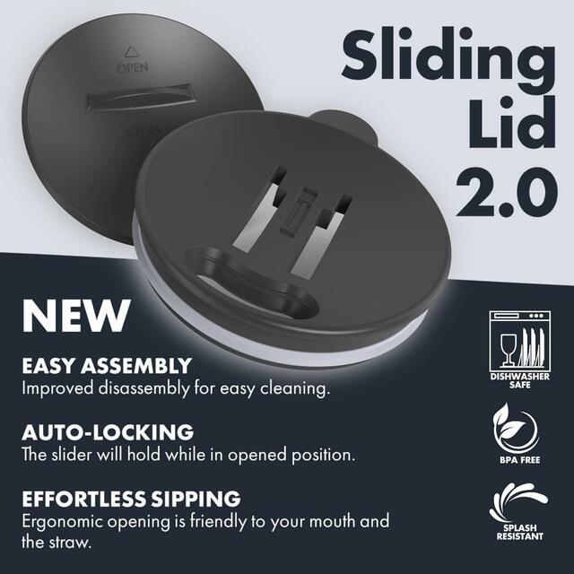フタは、片手で簡単に開閉できるスライド式。飲み口の露出を最小限に抑えつつ、サッと飲める構造で、作業中や移動中でも使いやすく、ほこりが入りにくいのもメリットです。