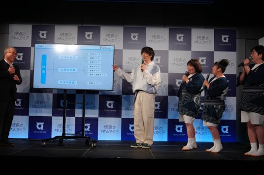 徳島県は、首都圏にお住まいの皆様に向けた新たな観光プロモーションとして「徳島で休んでく?」を始動、その一環として1月29日(木)にプロモーション発表会をP.O.南青山ホールにて開催しました。 本イベントでは、徳島県知事の後藤田正純が登壇し新たな観光戦略を発表したほか、新CMキャラクターの犬飼貴丈さん、瀬戸璃子さん、特別ゲストの森三中さん、休養学の専門家である片野秀樹先生をお招きし、「疲れ」を感じる現代人に向けた徳島ならではの「休み方」を提案しました。