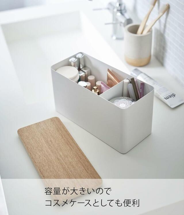 ゆとりのあるサイズ感でコスメケースとしても活用可能、用途を限定することなく、インテリアの雰囲気を壊さず“散らかり”を解消できる収納ケースですよ。