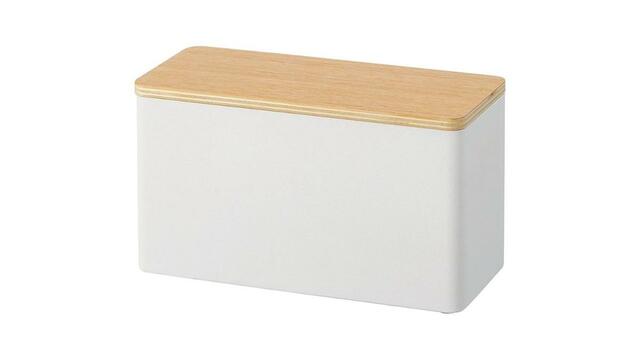 長さ約23cm✕幅10.5cm✕高さ14cmと、カウンター上に置きやすいサイズに。木蓋付きのため中身が見えず、生活感を抑えながら収納できるのもポイントです。