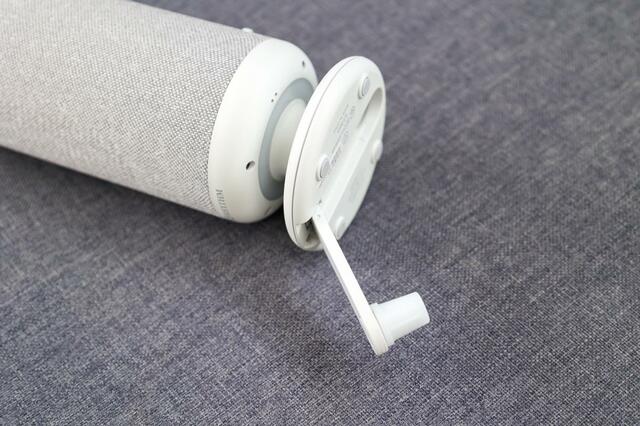 充電方法は、普段のUSB-C充電に加えて、背面のハンドルを回す「手回し充電」もOK。