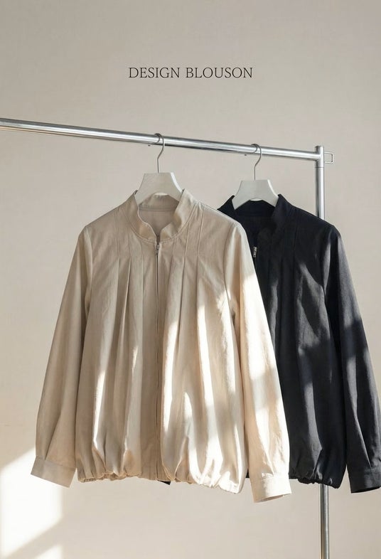 ● タックブルゾンさっと羽織るだけで印象が整う、シンプルなデザインの軽アウター(ライトアウター)。