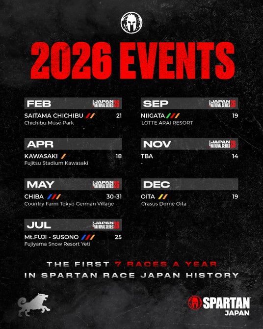 2026年1月29日(木)に日本国内で開催されるスパルタンレースのスケジュールを発表いたしました。