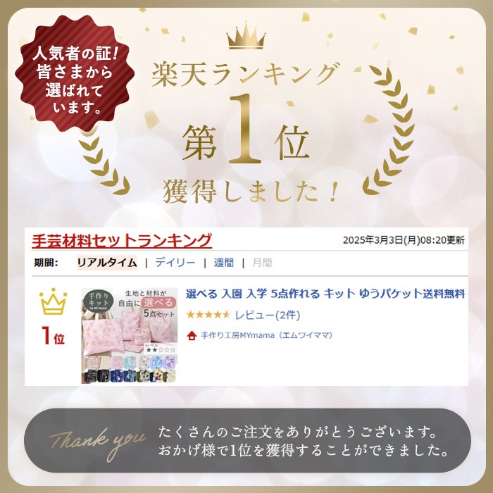 「手芸材料セットランキング(期間:リアルタイム)」で1位を獲得。