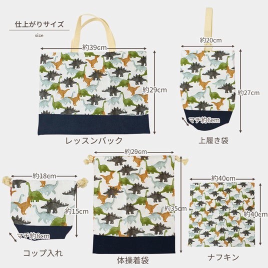 体操着袋・コップ入れ・ナフキンは扱いやすい1枚仕立てにするなど、使い勝手にも配慮しています。