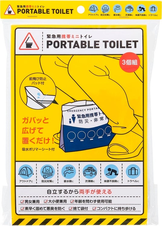渋滞中、断水時、外出先での急な体調不良…。「トイレが使えない!」という場面は、意外と突然やってきます。そんな時に頼れるのが、今回発売の「COGIT防災 緊急用携帯ミニトイレ 3個組」。