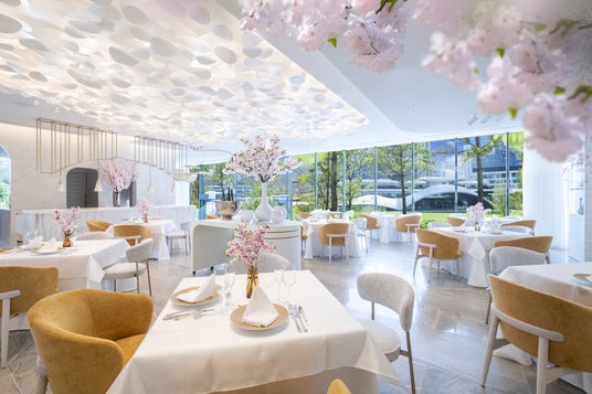 期間限定で、レストランの会場装飾を満開の桜で彩り、春の訪れを感じる空間をご用意します。店内に広がる桜を眺めながら、まるでお花見をしているかのような特別な時間をお楽しみください。