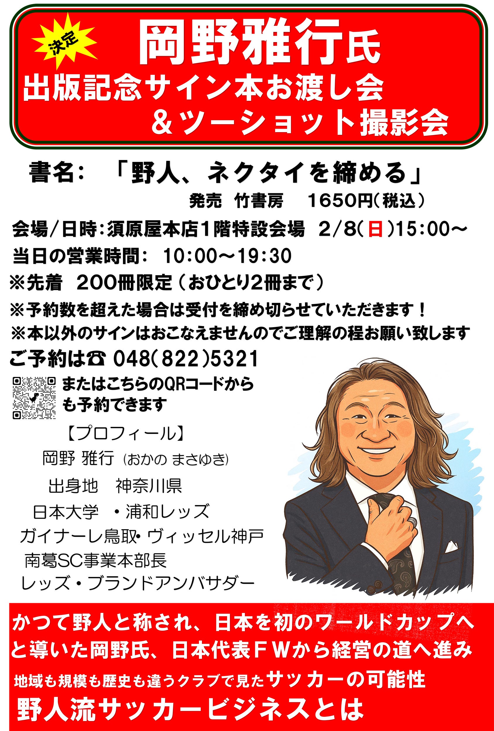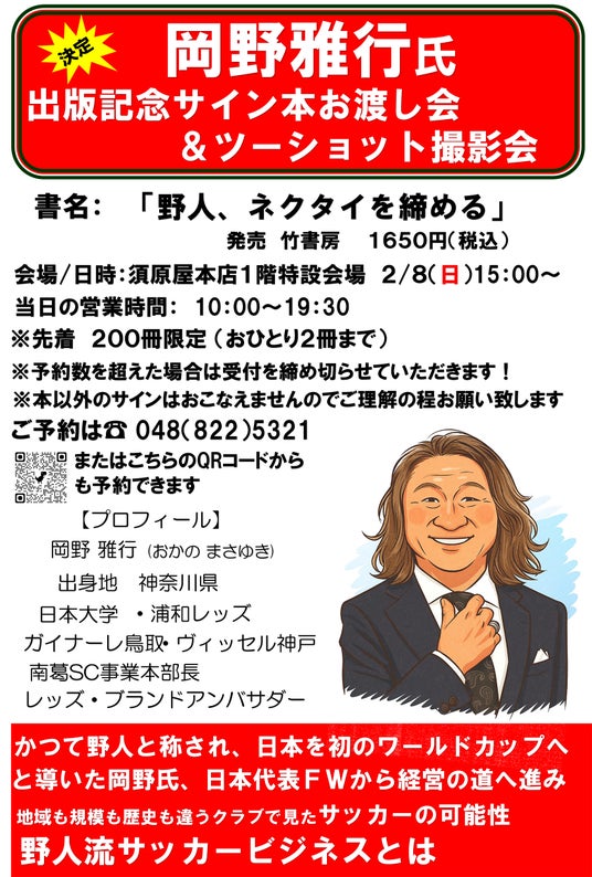 決定! 岡野雅行氏 出版記念サイン本お渡し会&ツーショット撮影会