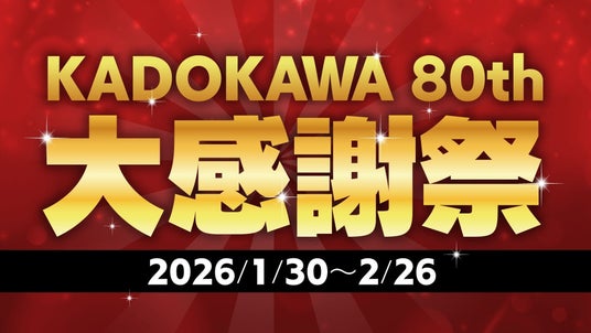 株式会社KADOKAWA(本社:東京都千代田区)は、2025年に創業80周年を迎えたことを記念し、読者の皆様への感謝を込めて、2026年1月30日(金)から2026年2月26日(木)までの期間、過去最大級の電子書籍フェア「KADOKAWA 80th 大感謝祭」を開催します。