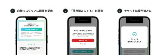 2)店舗スタッフ確認の上、チケットを使用済みにします。