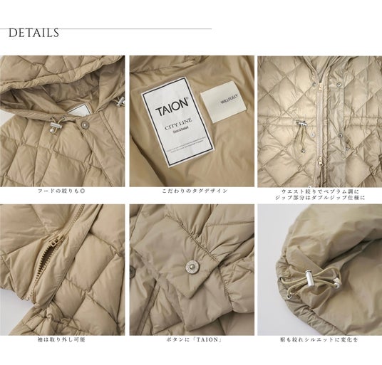 数値が高くなるにつれ保温性が増し、600~700フィルパワーがあればタウンユースで着用いただくのに最適な温かさが得られるレベルです。その中でも800フィルパワーの高品質で保温性の高いダウンをTAIONは採用しています。