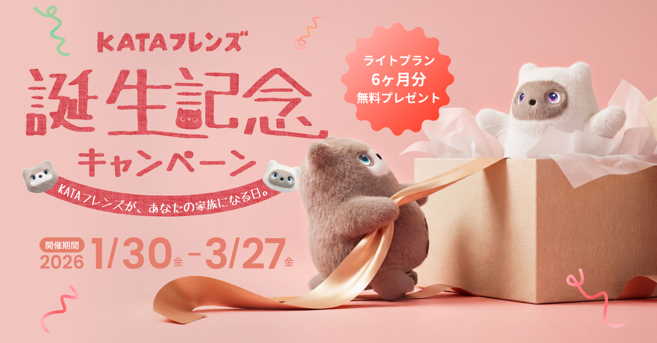 KATAフレンズの誕生を記念し、ライトプランが半年間無料になる特別キャンペーンを実施いたします。