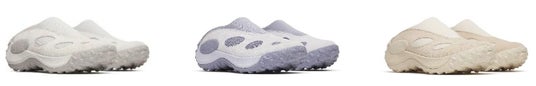 Mocタイプは、通気性に優れたニットとメッシュを組み合わせたアッパーにより、テック感も匂わせつつ、軽快でアクティブな印象に。足を包み込むフィット感と耐久性を両立し、日常の移動を快適に支えてくれます。一方、Muleタイプは、上質なスエードレザーを採用しつつ、MERRELL特有のオーバルホールをアッパーにデザインとして施しており、ラフと洗練がパーフェクトに共存する佇まいに。さらに、ネオプレン製のストレッチカラー(履き口)が、ミュール特有の気軽な着脱性と歩行の安定感を両立します。