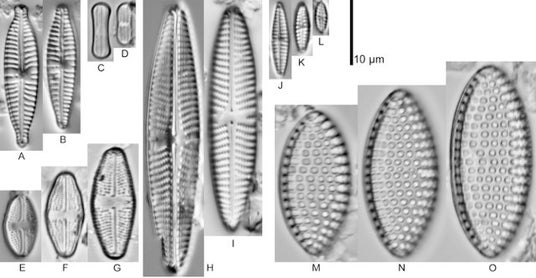 H,I. Navicula eidrigiana. J-L. N. sp. cf. perminuta.